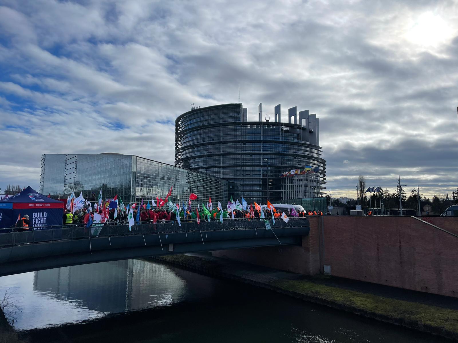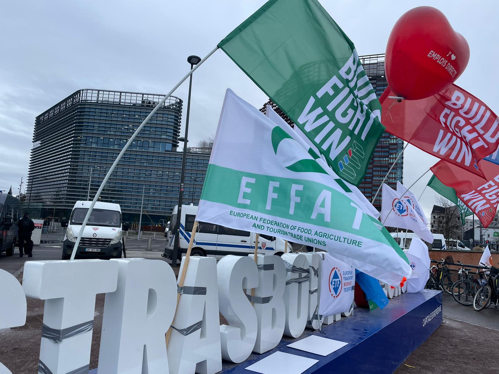STRASBURGO, FAI CISL IN PIAZZA CON L'EFFAT CONTRO CAPORALATO E ABUSI NEGLI APPALTI