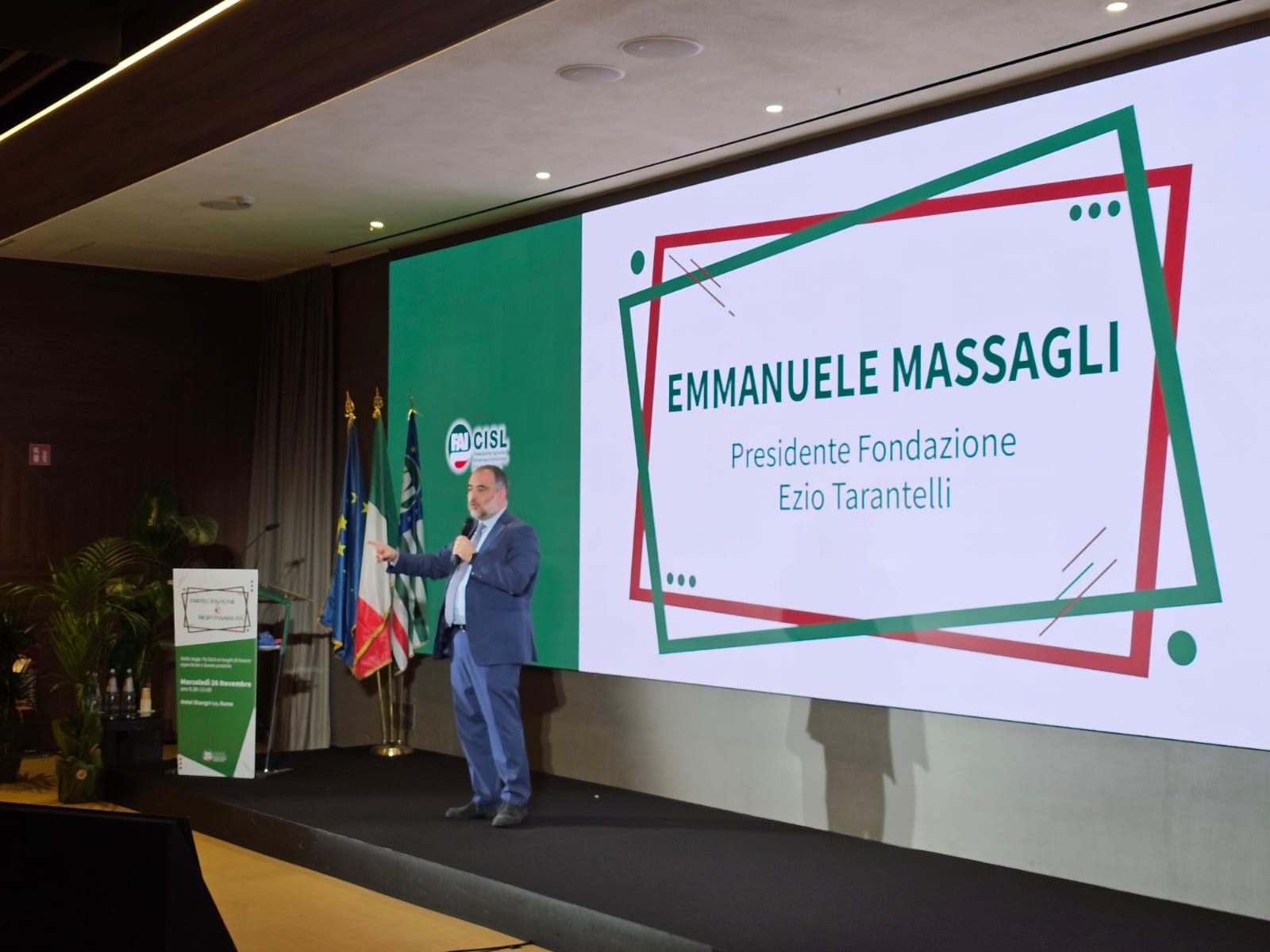 All’iniziativa sono intervenuti Emmanuele Massagli, Presidente Fondazione Ezio Tarantelli, il Direttore Generale della Fondazione Enpaia Roberto Diacetti, la Presidente di Filiera Madeo Anna Madeo, il Presidente Eban Roberto Caponi, la Responsabile relazioni industriali di Confcooperative Sabina Valentini, Romano Magrini, Responsabile relazioni sindacali di Coldiretti, Alessandro Glisenti, Presidente Ebs Industria Alimentare, Francesca Biondo, Presidente Osservatorio Nazionale Pesca, Luca Scapolo, Hr manager Gruppo De Cecco, Fabrizio Boggio, operatore Fai-Cisl Bergamo, Alessandro Crippa, Hr manager Gruppo Campari, Stefano Pepa, Segretario generale aggiunto Fai-Cisl Marche, Davide Procaccio, delegato Fai-Cisl in Ferrero.
