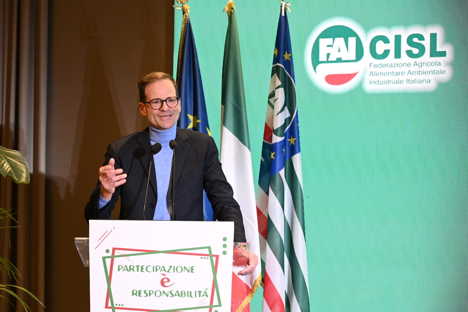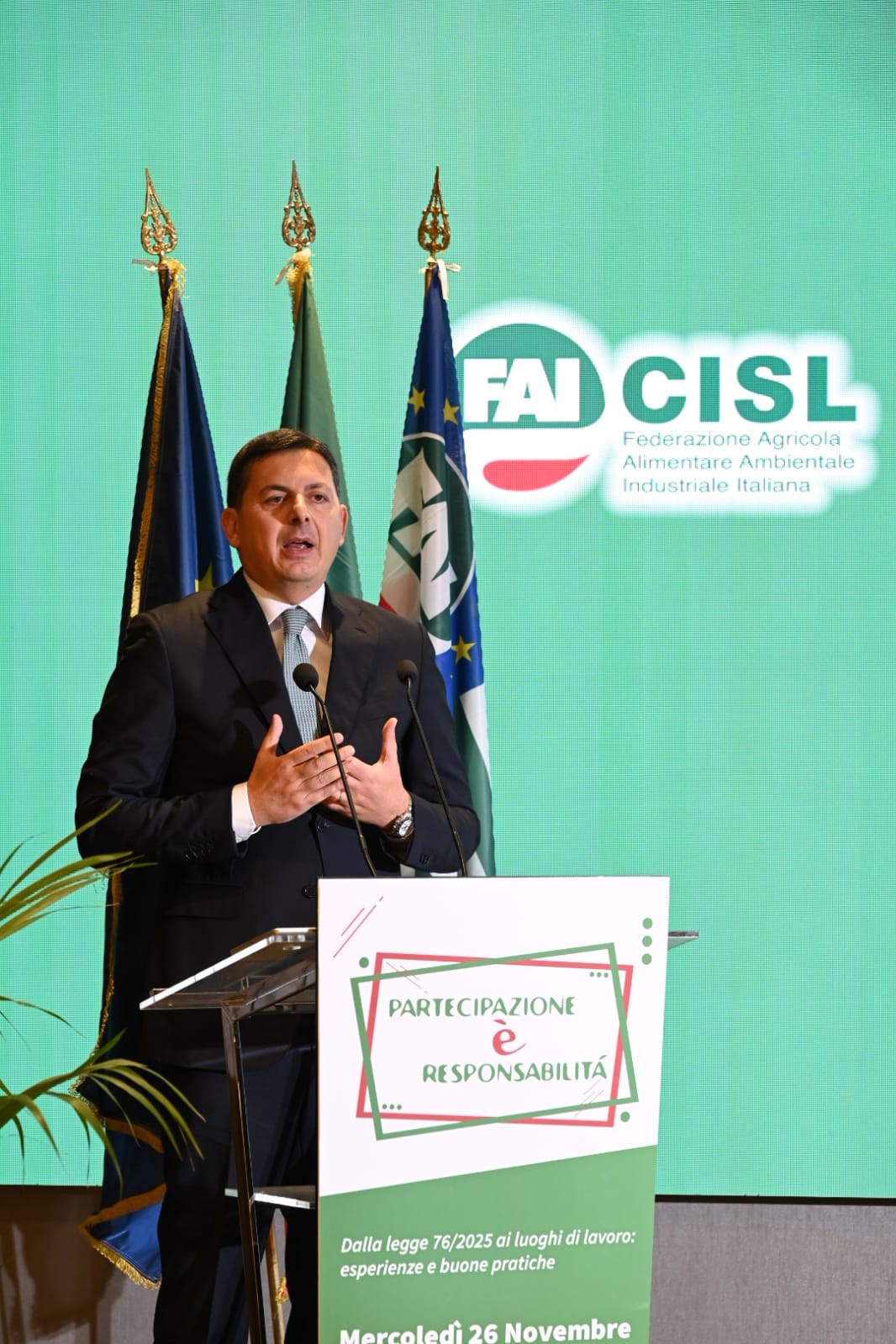 “La fase che si apre adesso, dopo la storica approvazione della Legge per la partecipazione, fortemente voluta dalla Cisl e sostenuta dalla Fai, fin dalla raccolta firme, richiede una enorme assunzione di responsabilità da parte dei lavoratori, dei sindacati, delle imprese, della politica: siamo chiamati a una nuova stagione di conquiste, di impegno, per rivendicare nei luoghi di lavoro nuovi spazi di partecipazione gestionale, consultiva, organizzativa, economico-finanziaria, con cui possiamo lanciare una sfida per un nuovo Umanesimo del lavoro, per rimettere al centro la persona, le relazioni, proprio mentre la tecnica rischia invece di indebolire questa centralità”.