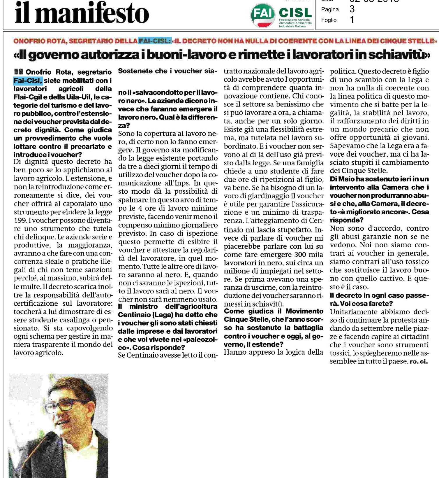 L'intervista completa su Il Manifesto https://ilmanifesto.it/rota-fai-cisl-il-governo-estende-luso-dei-voucher-e-rimette-i-lavoratori-in-schiavitu/